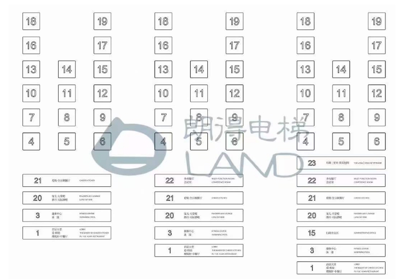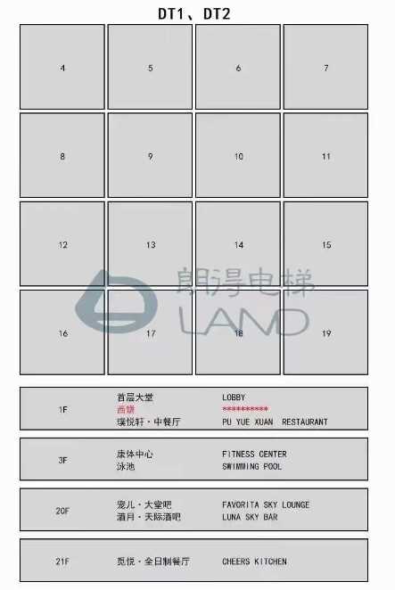 朗得电梯操纵箱按钮和楼层指示排版