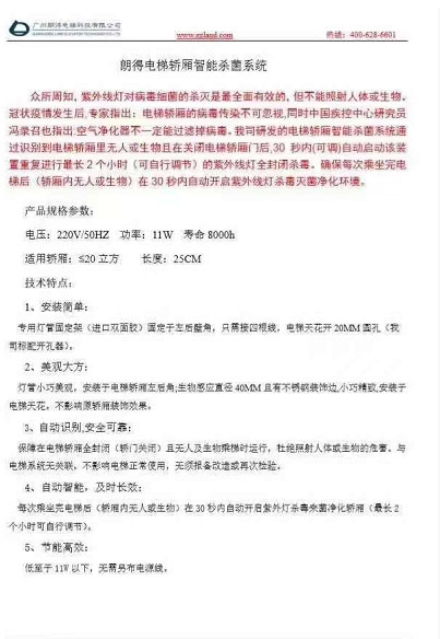 疫情防控不放松!朗得电梯智能杀毒装置 一有认证的智能杀毒装置!